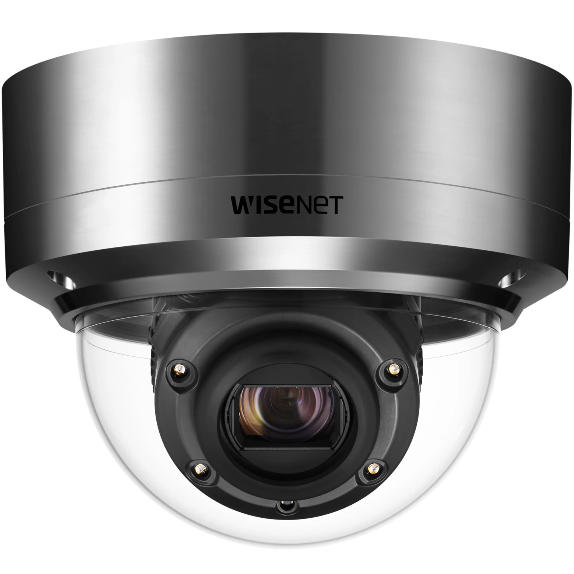 Wisenet X powered by Wisenet 5 network IR stainless steel dome camera, 2MP, Full HD(1080p) @60fps, 12X optical zoom lens (5.2mm ~62.4mm) (54.58º ~ 5.30º), triple codec H.265/H.264/MJPEG with WiseStream II technology, 150dB WDR, USB port for easy installation, advanced video analytics and sound classification, high powered IR LEDs range of 229', true D/N, dual SD card, hallway view, HLC, defog detection, DIS(Gyro), 12VDC/24VAC/PoE, IP66, IK10, NEMA 4X, -40°C ~ +55°C (-40°F ~ +131°F)