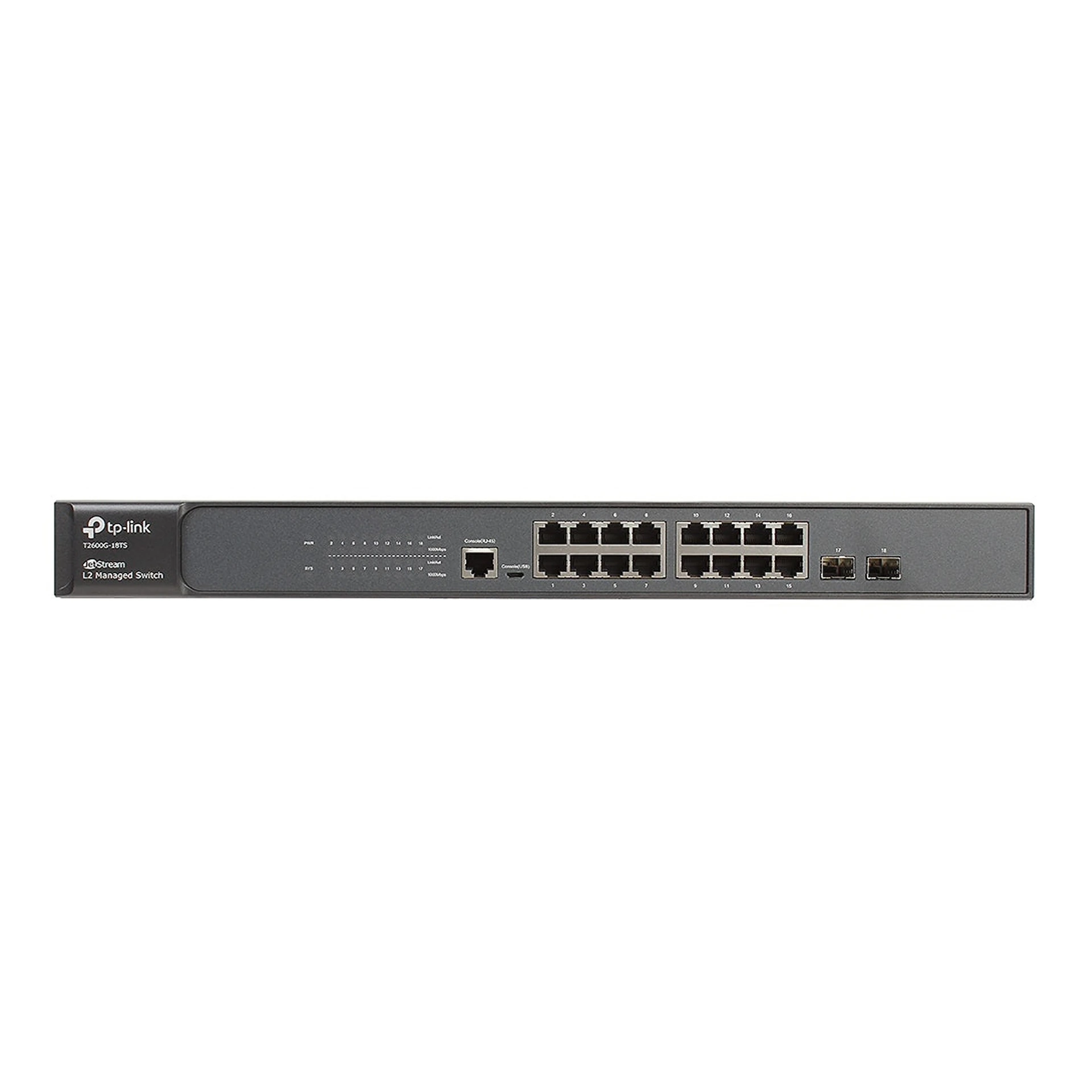 JetStream™ 16-port Pure-Gigabit L2 Managed Switch, 16 10/100/1000Mbps RJ45 ports including 2 combo SFP slots, Port/Tag/MAC/Voice/Protocol-based VLAN, GVRP, STP/RSTP/MSTP, IGMP V1/V2/V3 Snooping, L2/L3/L4 Traffic Classification/Priority Management, Rate Limiting, 802.1x, IEEE 802.3ad, L2/3/4 ACL, Port Mirroring, SSL, SSH, CLI, SNMP, RMON, 1U 19-inch rack-mountable steel case